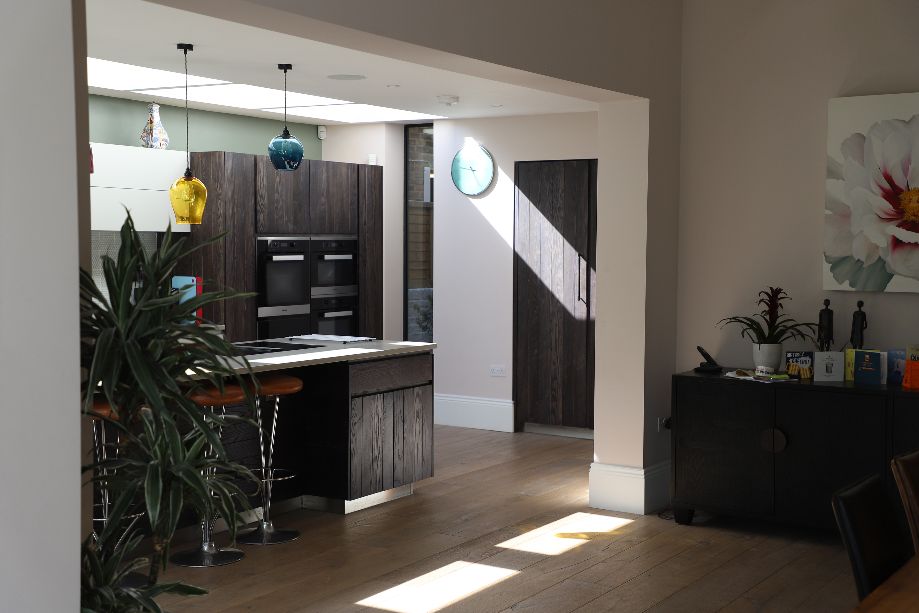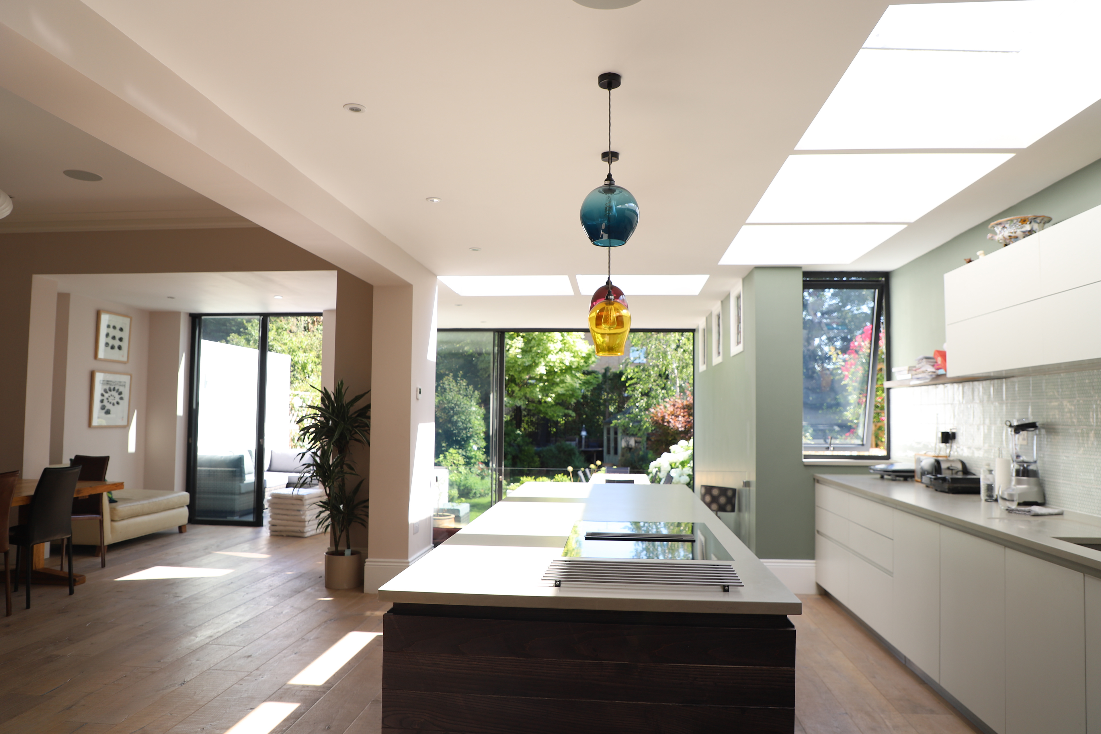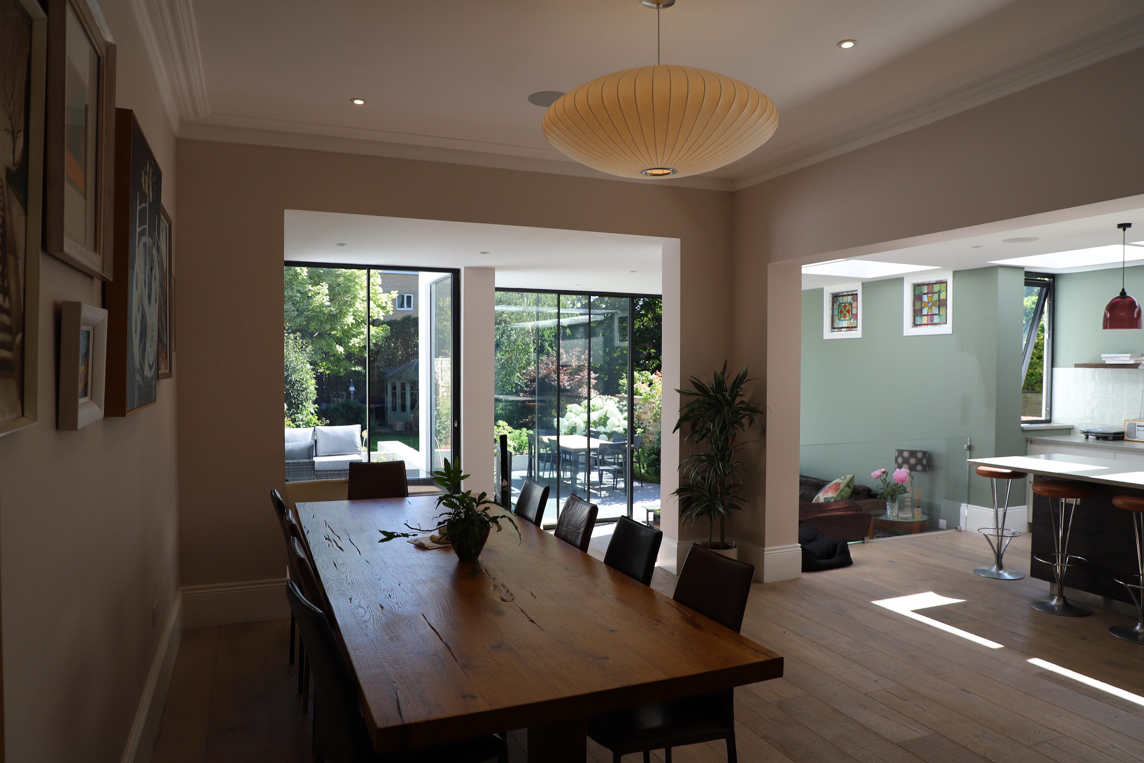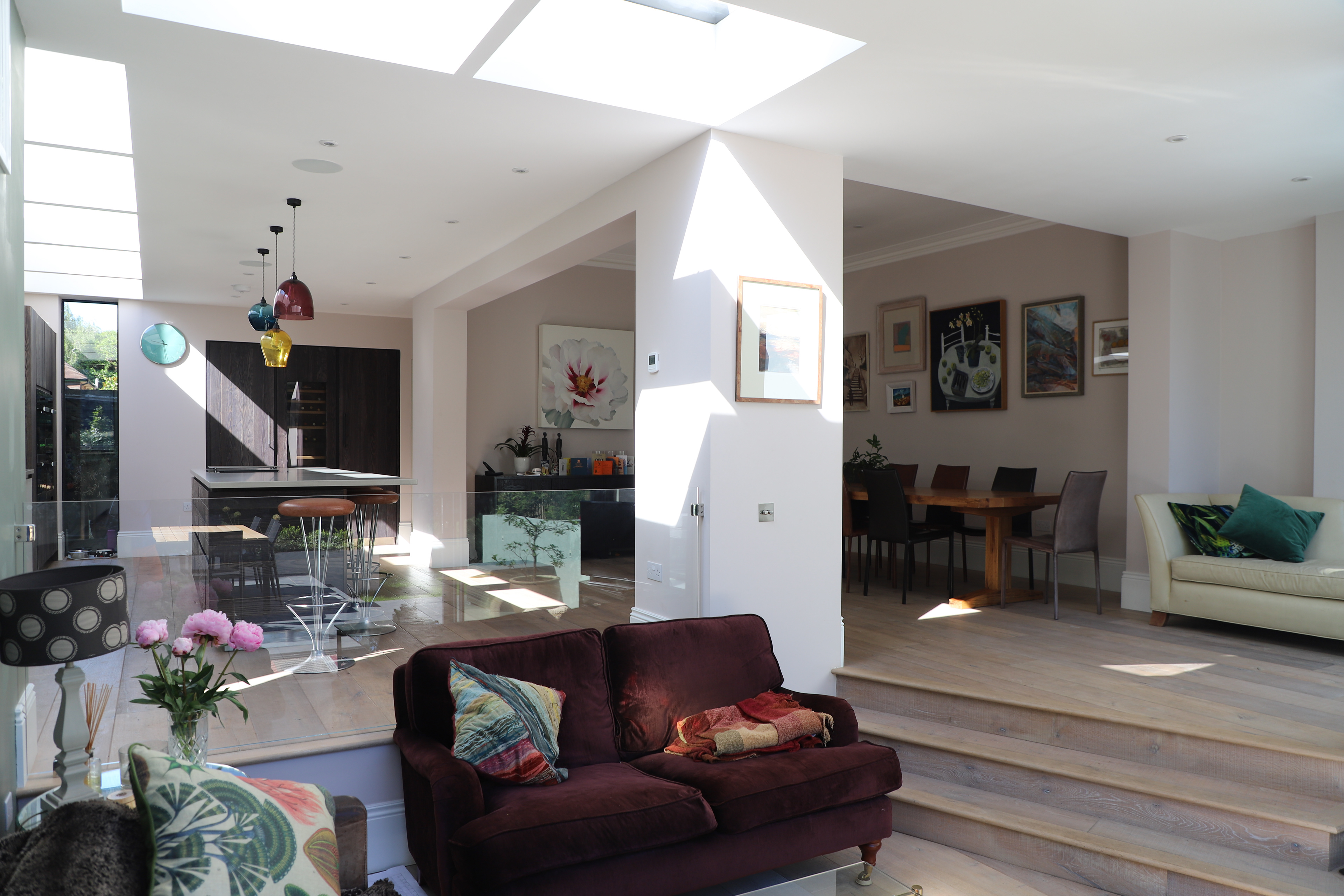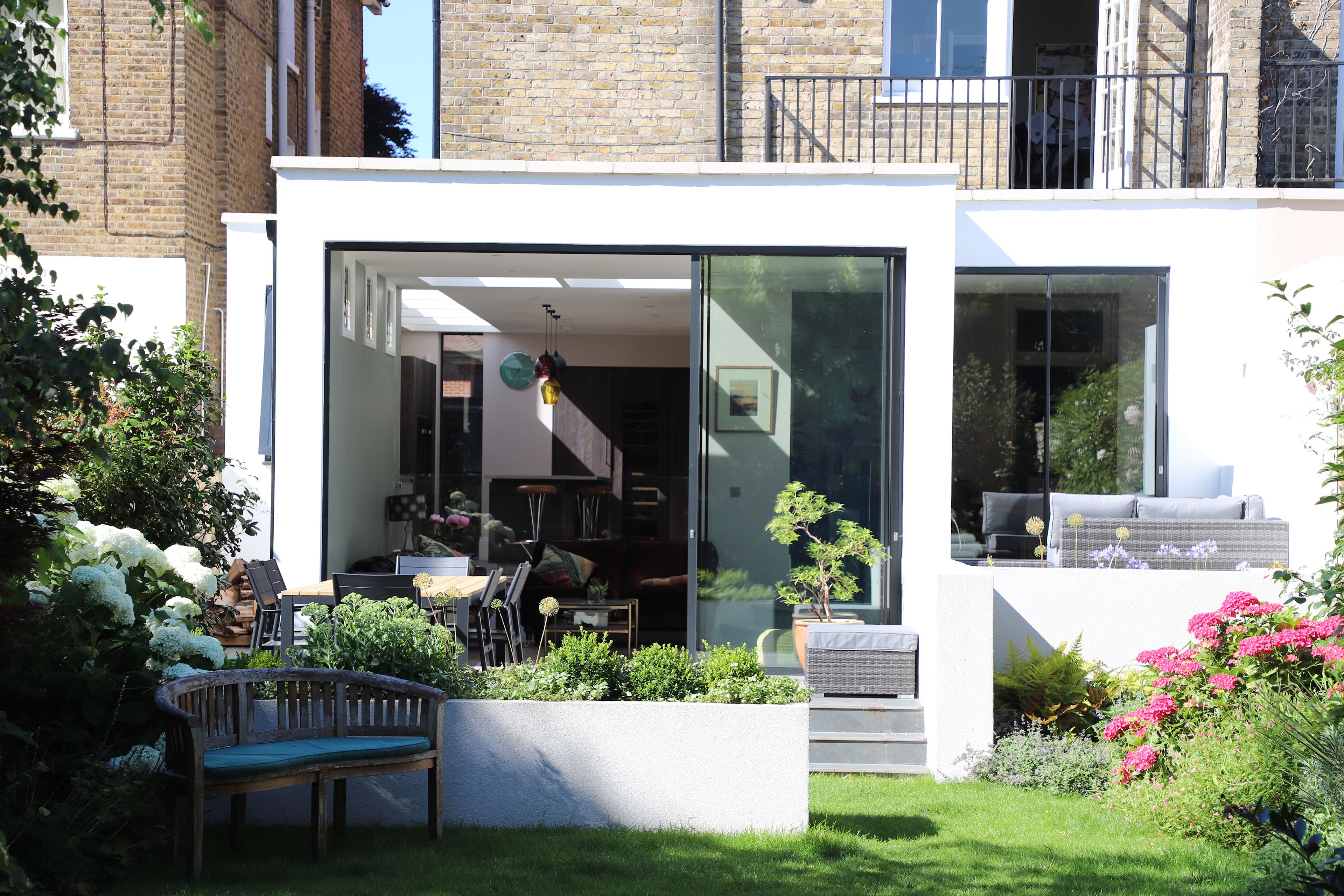 A rear garden extension and remodelling of a Victorian house in chiswick. The rear of the property was substantially altered to create an enlarged contemporary living space with open plan kitchen/dining and living areas. External terraces navigate the site levels and give informal spaces that embrace the rear garden. Internal remodelling re-imagined the Victorian interior into light and contemporary space while retaining original Victorian details and included a basement cellar space that was converted to family cinema. Planning was granted in 2016 and the work on site completed in 2018